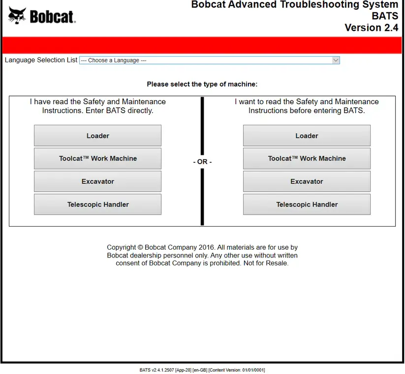 Bobcat Advanced Troubleshooting System BATS 2021.05 contains All technical information for Bobcat excavators/loader/telescopic handlers. Wiring diagrams, error codes, service bulletins, modifications, etc etc.