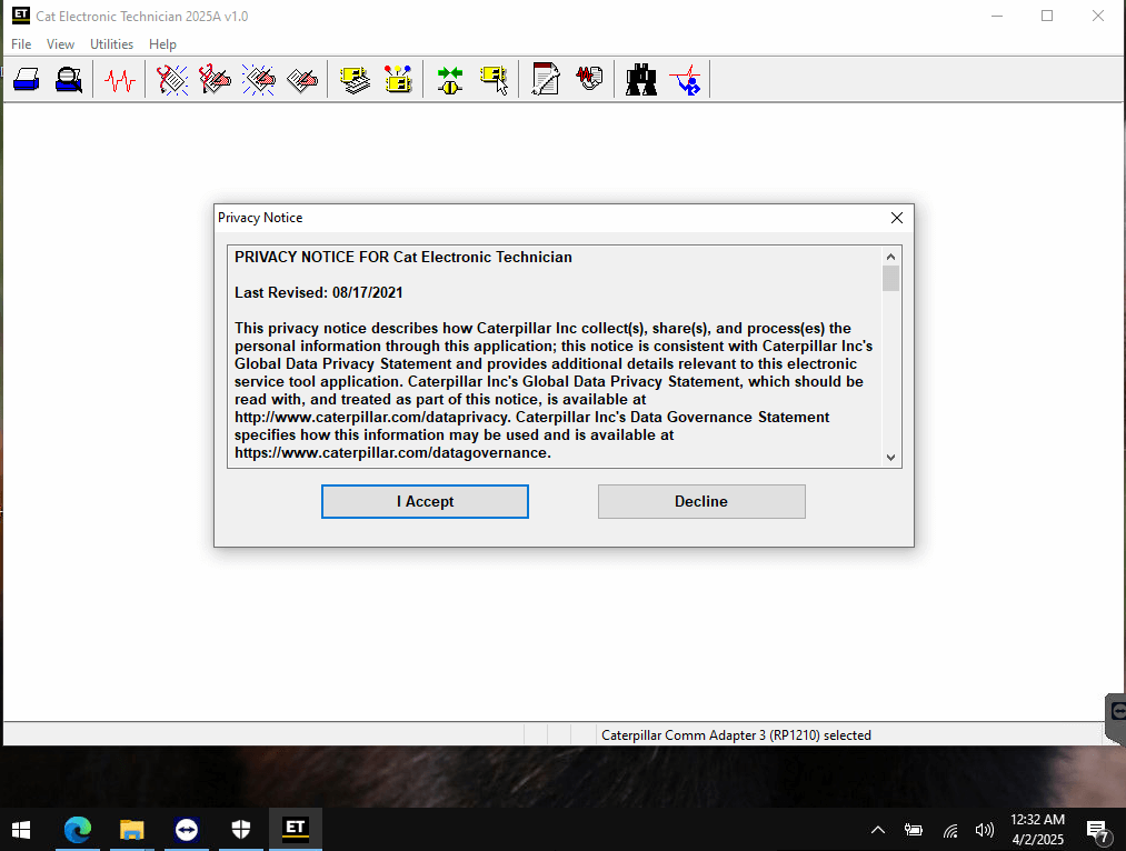 CAT ET 2025A (Electronic Technician) is the official diagnostic software used by Caterpillar dealers and certified technicians worldwide. It allows full communication with CAT engines and machines for monitoring, troubleshooting, and configuration.