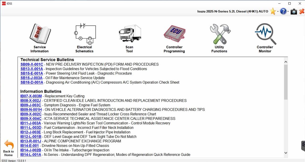 US-IDSS 2025 support All Isuzu Model from 1996-2026 (USA and Canada Market). Support for Diagnostic – Service Manual – Wiring Diagram – DTC Guide – TSBs of all Isuzu Model.